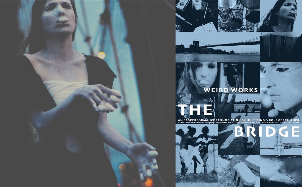 In WEIRD WORKS THE BRIDGE, a filmic para/pataphrasing of Chris Marker’s La Jetée (1962), NN performs a walk across the Brooklyn Bridge of New York City. We are invited to both hear and see the filmmaker processing his memories of the performance – what it connects to – on the timeline of a larger set of events. The film explores our (in)capacity to create object relations, questions our thirst for pictures, lists, numbers, …and mourns the loss of fellow beings. WEIRD WORKS THE BRIDGE is the sequel to WEIRD DRAWN AT LAND.