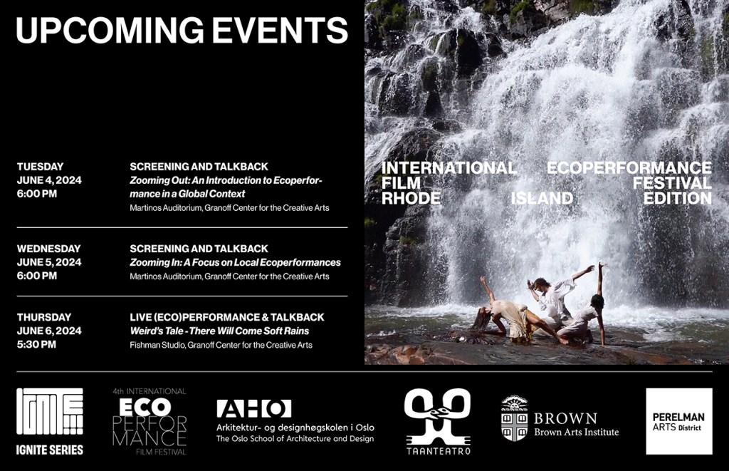 An IGNITE Series Campus Project at Brown Arts curated by Julie Dind, Inga Chinilina and Rolf Gerstlauer; in collaboration with Maura Baiocchi and Wolfgang Pannek, founders and organizers of the INTERNATIONAL ECOPERFORMANCE FILM-FESTIVAL, Saō Paulo, Brazil