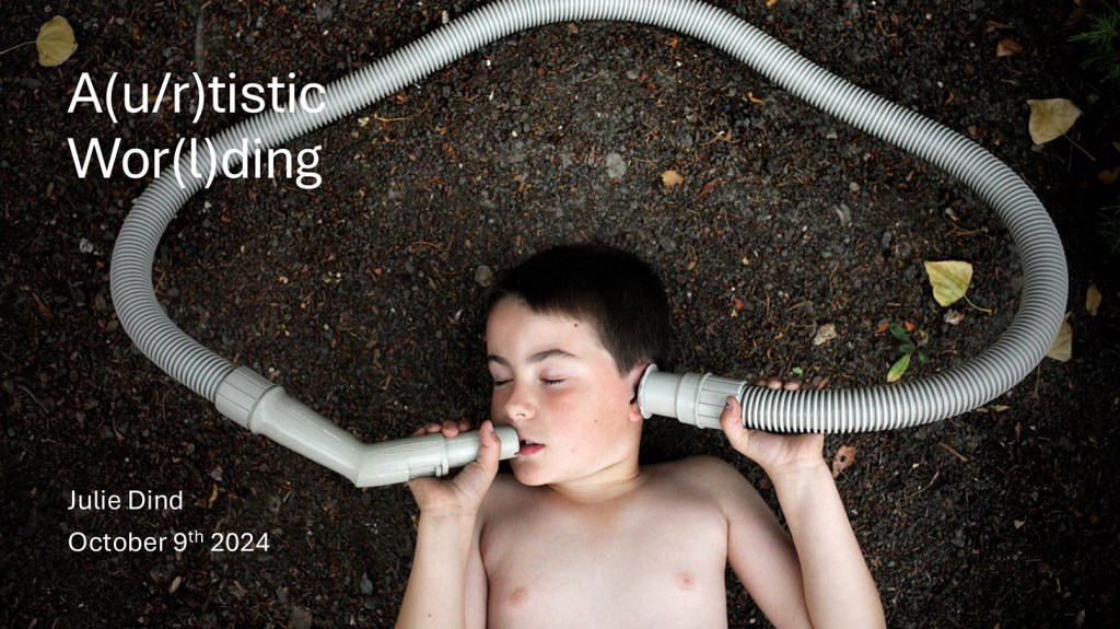 October 9th 2024, Julie successfully defended her doctoral thesis A(u/r)tistic Wor(l)ding at the Department of Theatre Arts & Performance Studies (TAPS) at Brown University, Providence, Rhodes Island/USA. Her main supervisor was Leon J A Hilton (Brown University, TAPS), and the readers were Spencer Golub (Brown University, TAPS), Laura Odello (Brown University, French and Francophone Studies), Mara Mills (New York University, Steinhardt, Media, Culture & Communication) and Bruce Baird (University of Massachusetts Amherst, Japanese Studies). The image is a photograph by Timothy Archibald titled Closed System (2008), published in Echolilia : Sometimes I Wonder, Echo Press 2010